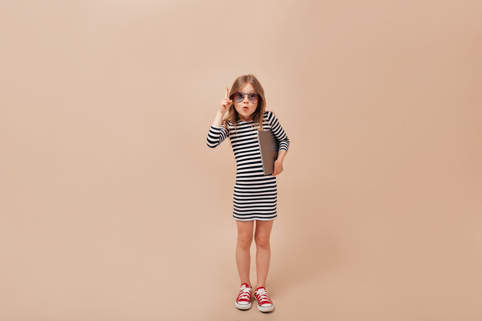 В сочетании с платьем сочетаются яркие красные кроссовки, которые добавляют ярких красок и обеспечивают комфорт и долговечность на весь день. Наряд дополняется модной белой кепкой-козырьком и большими очками, которые добавляют образу веселья и игривости.